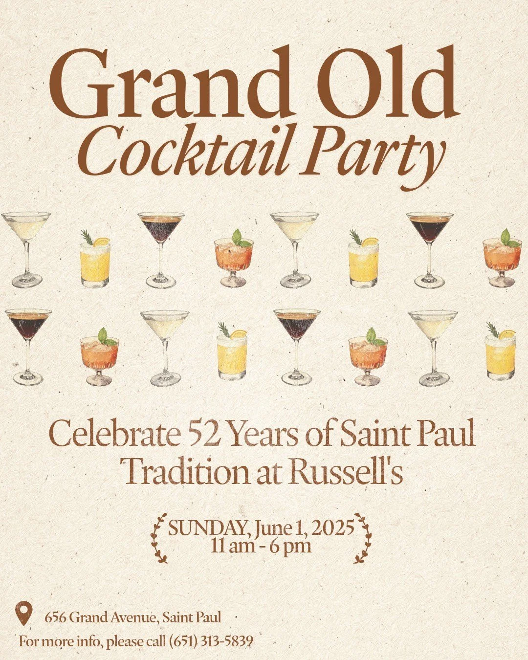 Our first major campaign with Russell’s centered around Grand Old Day, a one-day summer festival celebrating the history of Grand Avenue. The restaurant wanted to increase foot traffic throughout the day and asked us to develop social and print materials promoting a themed “Cocktail Party” and the launch of a new happy-hour menu.